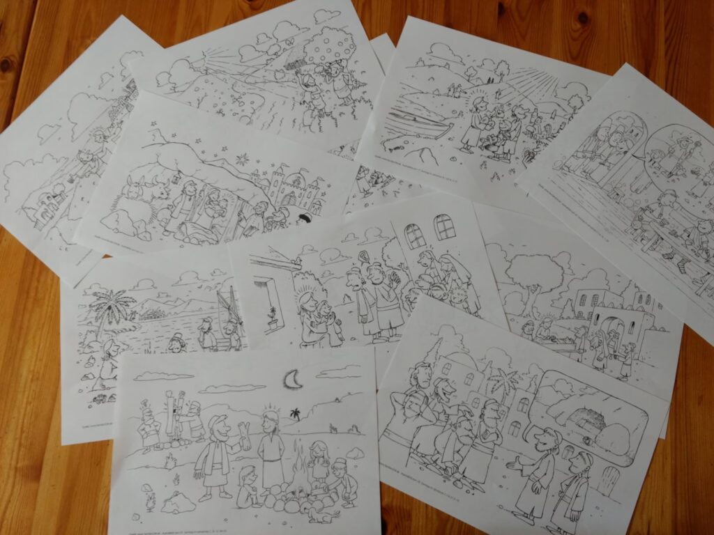 In den letzten Jahren ist eine Vielzahl von pädagogischen Hilfsmitteln entstanden, die Kindern einen spielerischen Zugang zur Bibel ermöglichen. Besonders beliebt sind Ausmalbilder, die biblische Erzählungen visuell aufbereiten. Diese Bilder können als Einstieg in das Gespräch über eine biblische Erzählung dienen oder als Vertiefung nach dem Hören des Evangeliums eingesetzt werden. Sie ermöglichen es Kindern, sich kreativ mit dem Gelesenen auseinanderzusetzen, sich die Szenen vorzustellen und darüber ins Gespräch zu kommen. Das Erzbistum Köln hat hierfür eine wertvolle Ressource geschaffen, die kostenfrei zum Download zur Verfügung steht.