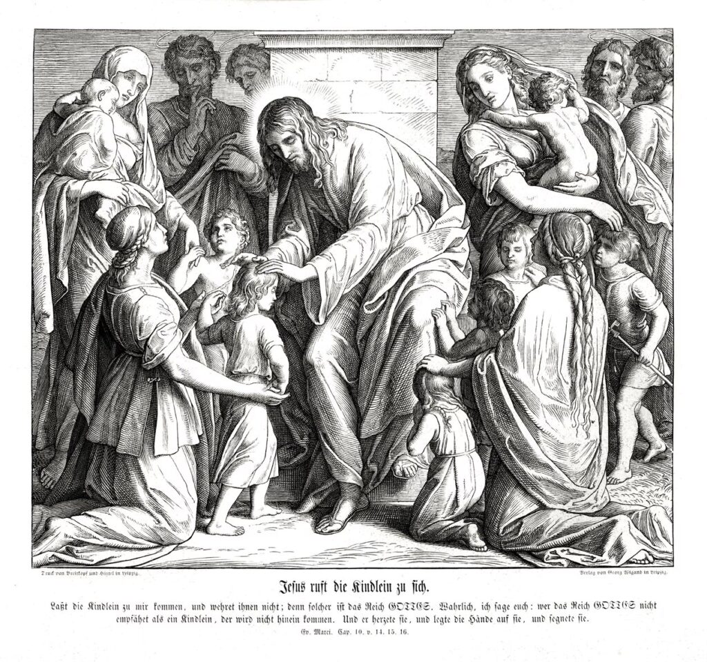 Jesus betont, dass das Reich Gottes Menschen gehört, die wie Kinder sind – demütig, vertrauensvoll, offen und bereit, das Reich Gottes bedingungslos anzunehmen. Er segnet die Kinder und macht sie zum Vorbild für den Glauben, da sie ohne Vorurteile und mit reiner Abhängigkeit leben. Seine Worte sind eine Aufforderung, sich von stolzen und selbstgenügsamen Haltungen zu lösen.