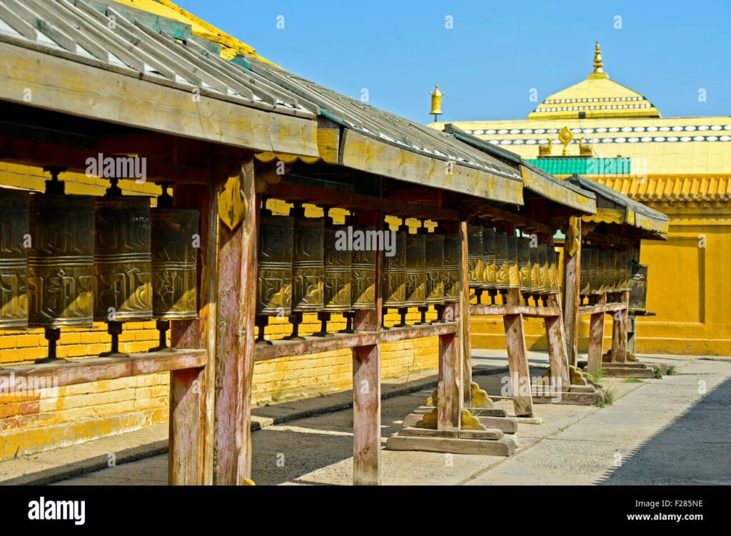Auf dem weitläufigen Gelände des Klosters befinden sich nicht nur die prächtigen Tempelgebäude, sondern auch zahlreiche buddhistische Stupas, die als heilige Denkmäler dienen. Angeschlossen an das Kloster ist auch die Öndör Gegeen Zanabazar Buddhist University, eine wichtige Bildungseinrichtung, die die nächste Generation von Mönchen und buddhistischen Gelehrten ausbildet und damit die Zukunft des Buddhismus in der Mongolei sichert.