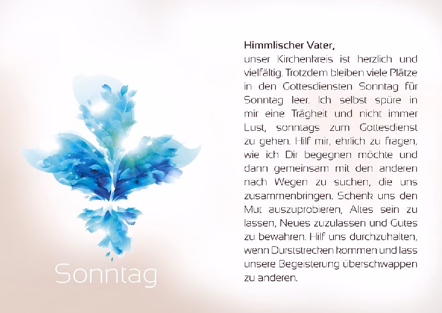 - Alle, die sich an diesem Tag zum Gottesdienst versammeln: Eine Bitte um Segen und Stärkung für die Gemeinde.