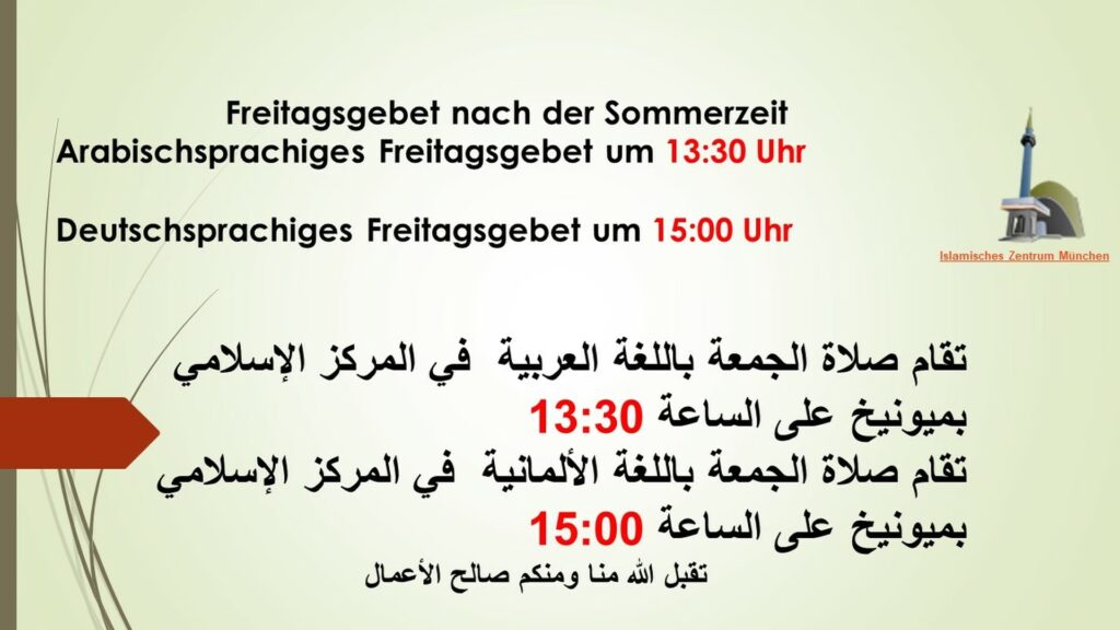 - Genaue Gebetszeiten für München können auf der Webseite des Islamischen Zentrums München (IZM) heruntergeladen werden. Viele Moscheen in München veröffentlichen ebenfalls ihre eigenen Zeitpläne. Zudem gibt es zahlreiche Smartphone-Apps und Online-Dienste, die die Gebetszeiten basierend auf dem Standort berechnen.