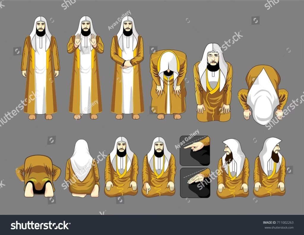 Im Islam spielt die Kopfhaltung eine zentrale und sehr spezifische Rolle im täglichen Gebet (Salat). Während des Gebets gibt es eine vorgeschriebene Abfolge von Körperhaltungen, die als Rak'ah bekannt sind. Eine der wichtigsten Haltungen ist die Sujud, die Niederwerfung, bei der der Betende sich so weit beugt, dass Stirn und Nase den Boden berühren. Dies ist ein Höhepunkt der Demut und Unterwerfung unter Allah. Die Hände sind dabei oft neben dem Kopf positioniert. Vor der Sujud gibt es auch das Rukūʿ, eine Verbeugung, bei der der Oberkörper und der Kopf waagerecht gehalten werden, während die Hände auf den Knien ruhen. Die präzise Ausführung dieser Haltungen ist entscheidend für die Gültigkeit des Gebets.
