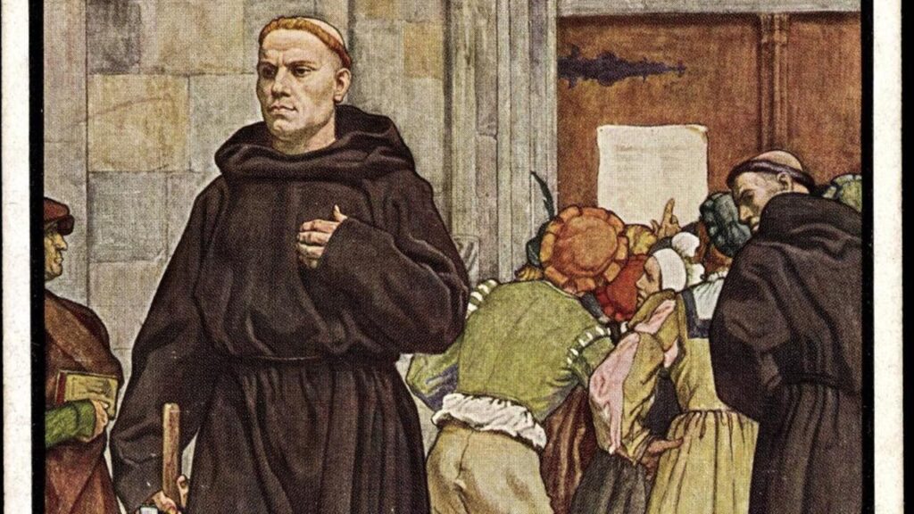 Ein berühmtes Gemälde zeigt Martin Luther in dunklen Mönchskleidern, wie er mit schwungvollen Schlägen ein großes Plakat an die schwere Tür der Schlosskirche in Wittenberg anbringt. Es ist der 31. Oktober 1517. Streitlustig deutet er mit dem Hammer auf seine 95 Thesen. Dieses Bild, das den symbolischen Beginn der Reformation darstellt, stützt sich maßgeblich auf Aussagen von Luthers Weggefährten, insbesondere auf einen Text von Philipp Melanchthon. Dieser schrieb im Vorwort zu einer Ausgabe von Luthers Werken aus dem Jahr 1546: