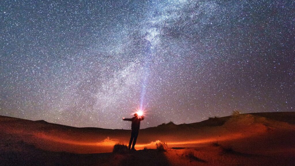 Der Blick zum Himmel eröffnet uns die unendliche Weite des Universums. Hier dürfen wir spüren, dass wir zwar mit den Füßen fest auf der Erde stehen, aber doch in unserem Wesen wesentlich mehr sind als dieser Körper. Wir richten uns aus zwischen Himmel und Erde, aufrecht und mit dem Wissen um unser wahres Wesen. Wenn du die Energien des Himmels anrufst, erbittest du Führung durch höhere Kräfte und den Schutz des Universums. Hier ist der Raum der unendlichen Möglichkeiten, der geistigen Welt, hier liegt die Schöpferenergie und unendliches Wissen. Danke Vater Himmel, der schützend sein Zelt über dir ausbreitet und spüre, dass dort dein wahres Zuhause liegt.