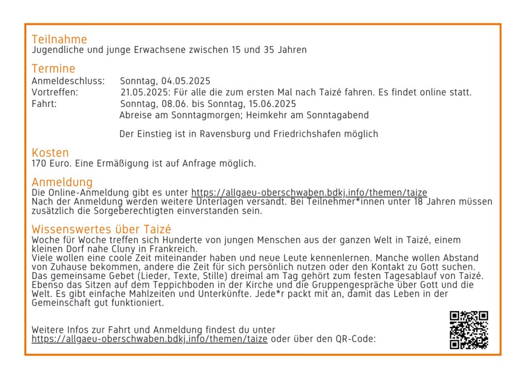 Wann ist die Anmeldung für Taizé-Fahrten?