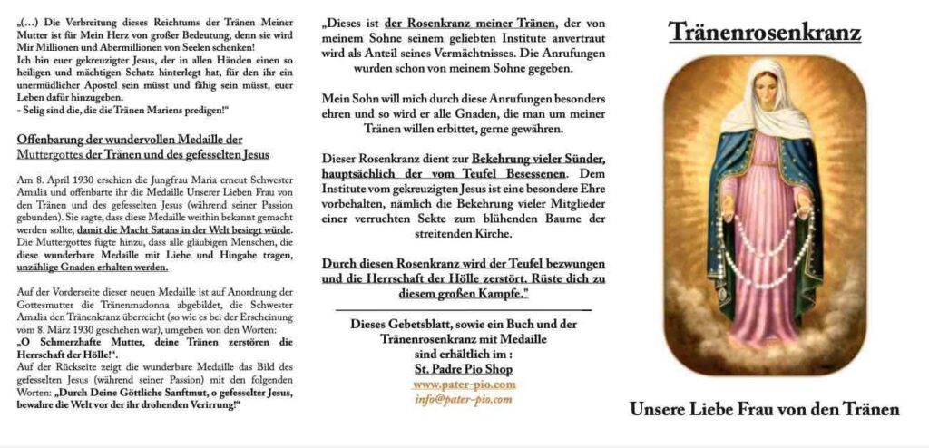 - Gnaden und Verheißungen des Tränenrosenkranzes