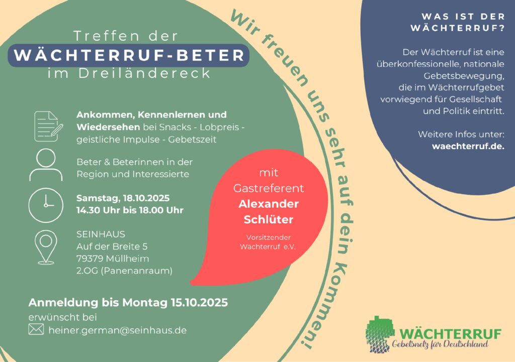 - Das Wächter-Frühgebet, wie es beispielsweise in St. Matthäus stattfindet, ist ein spezifisches Treffen, das oft als monatlicher Fixpunkt für eine lokale Gruppe oder Einzelbeter dient, um gemeinsam oder individuell in die Gebetskette des Wächterrufs einzusteigen. Es ist ein konkreter Ort und eine Zeit, an der das nationale Gebetsmandat lokal umgesetzt wird.