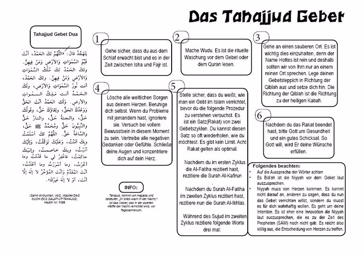 - Vergebung von Sünden: Das Tahajjud-Gebet ist eine Form der Reinigung von Sünden und Fehlern.