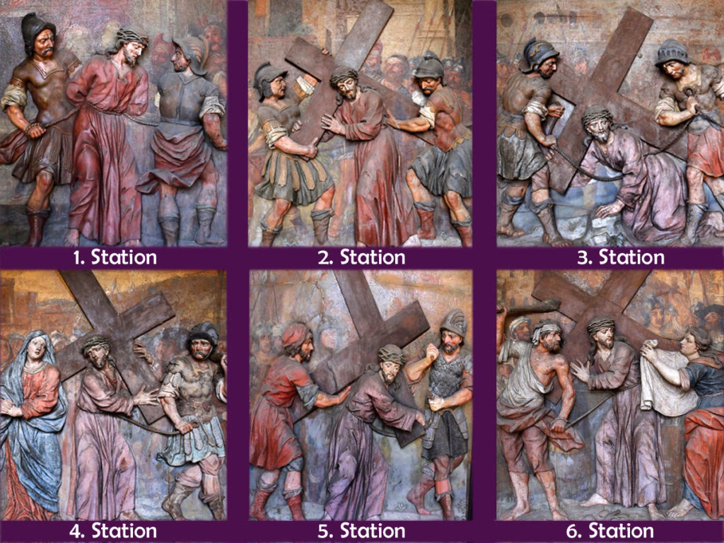 Die heute üblichen 14 Stationen des Kreuzwegs bilden den Leidensweg Jesu in seiner eindrücklichen Dramatik ab. Dabei stützen sie sich größtenteils auf die Evangelien, wobei fünf Stationen dort nicht explizit erwähnt werden, sondern der Tradition entstammen. Jesu Verurteilung und seine Grablegung rahmen das Geschehen ein: