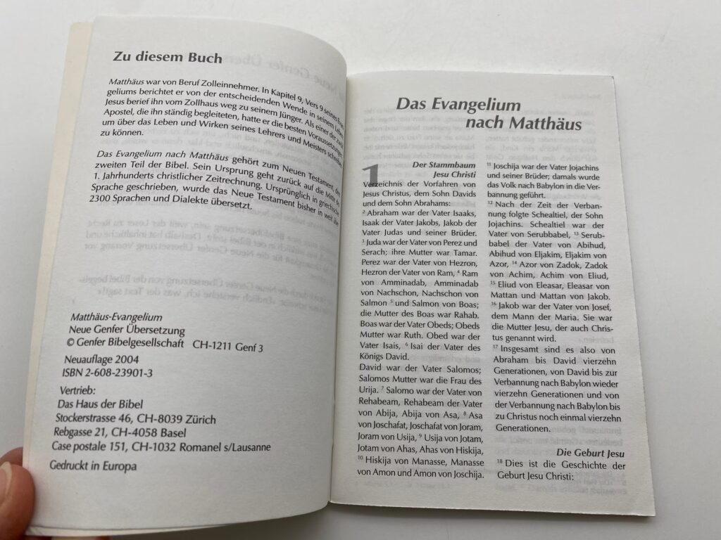 - Für das persönliche Bibelstudium: Hier kann eine Kombination von Übersetzungen hilfreich sein. Eine wörtliche Übersetzung (z.B. Elberfelder, Menge, Schlachter) kann für das Detailstudium nützlich sein, während eine kommunikativere Übersetzung (z.B. Neue Genfer, Hoffnung für Alle, BasisBibel) das Gesamtverständnis fördern kann.